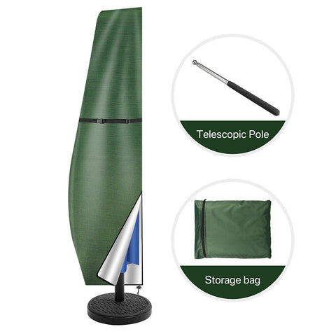 Matériau Durable : Fabriquée en polyester Oxford avec un revêtement PU noir, cette housse protège efficacement contre les rayons UV et prolonge la durée de vie de votre parasol.